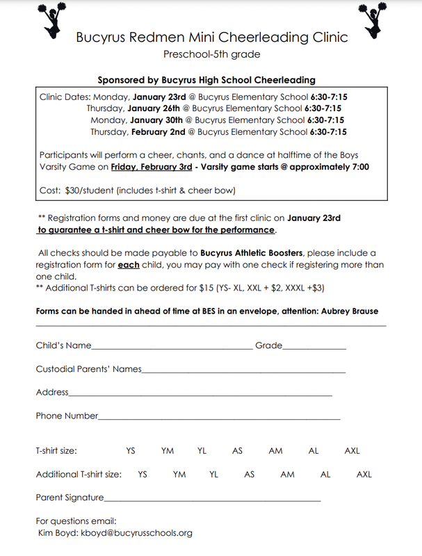 Calling all cheerleaders! Please reach out to Kim Boyd with any questions at: kboyd@bucyrusschools.org
